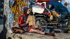 Punk girl sitting on Berlin Wall remains asking for money to buy "beer and weed".