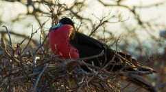 A Magnificent Frigatebird or Man of War (Fregata magnificens) with inflated gulag pouch to attract females.