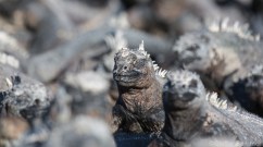Marine iguanas sunbathing at the shores of Fernandina, Galapagos.
