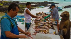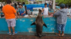 This sea lion is shopping at a local fish monger in the Galapagos